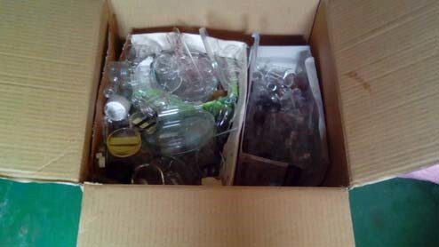 (3)、玻璃類之固體廢棄物應使用紙箱盛裝(參考如下圖),並妥善封裝,避免清運時散落,嚴禁摻入固廢袋中。常溫存放。