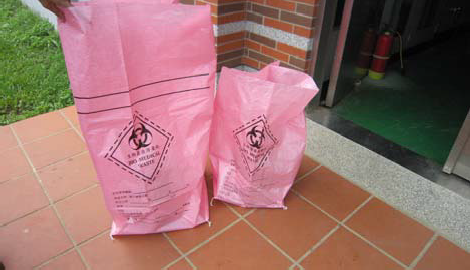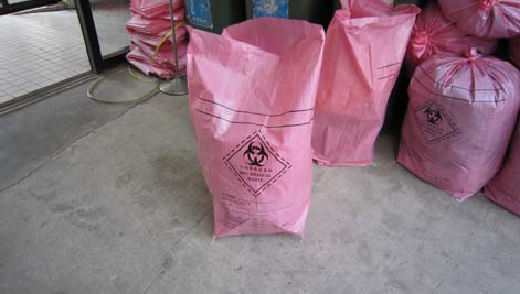 (4)、廢檢體、廢標本或動物殘肢、器官或組織等、廢透析用具、廢血液或血液製品等應使用固廢專用貯存袋承裝,並放置於 0 度 C 冷凍貯存。
