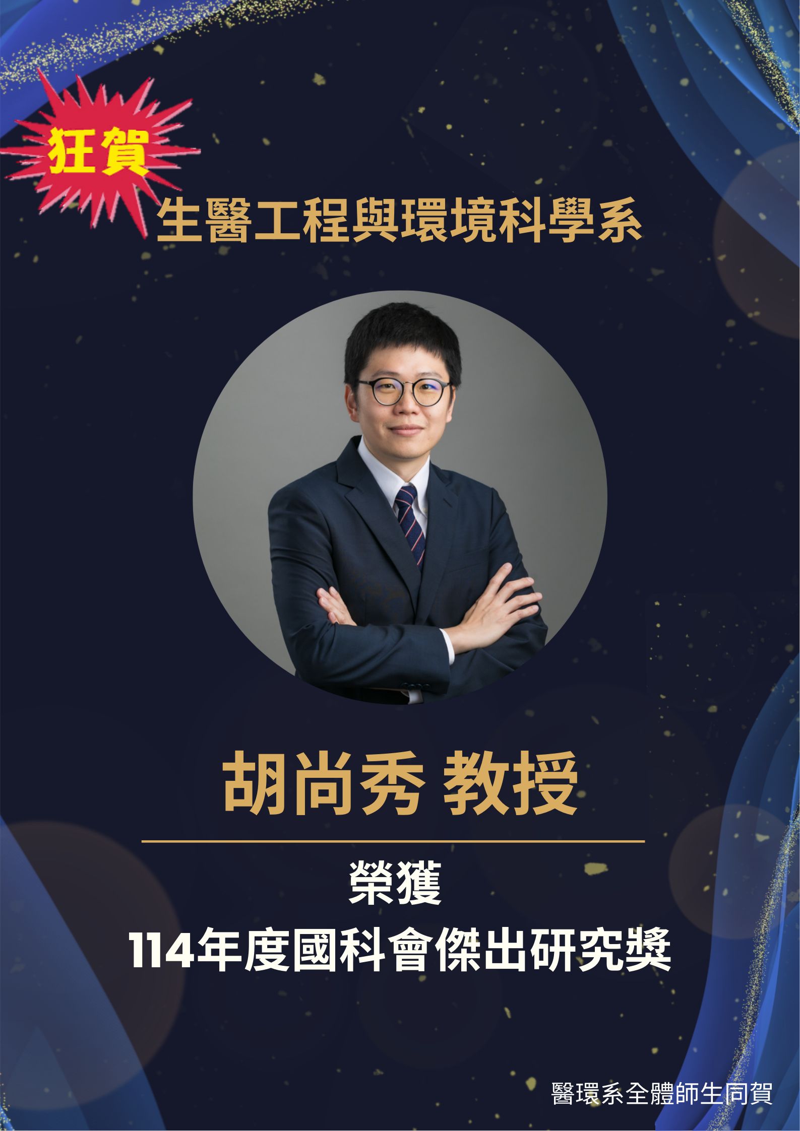賀!本系胡尚秀教授 榮獲國科會「114年度傑出研究獎」